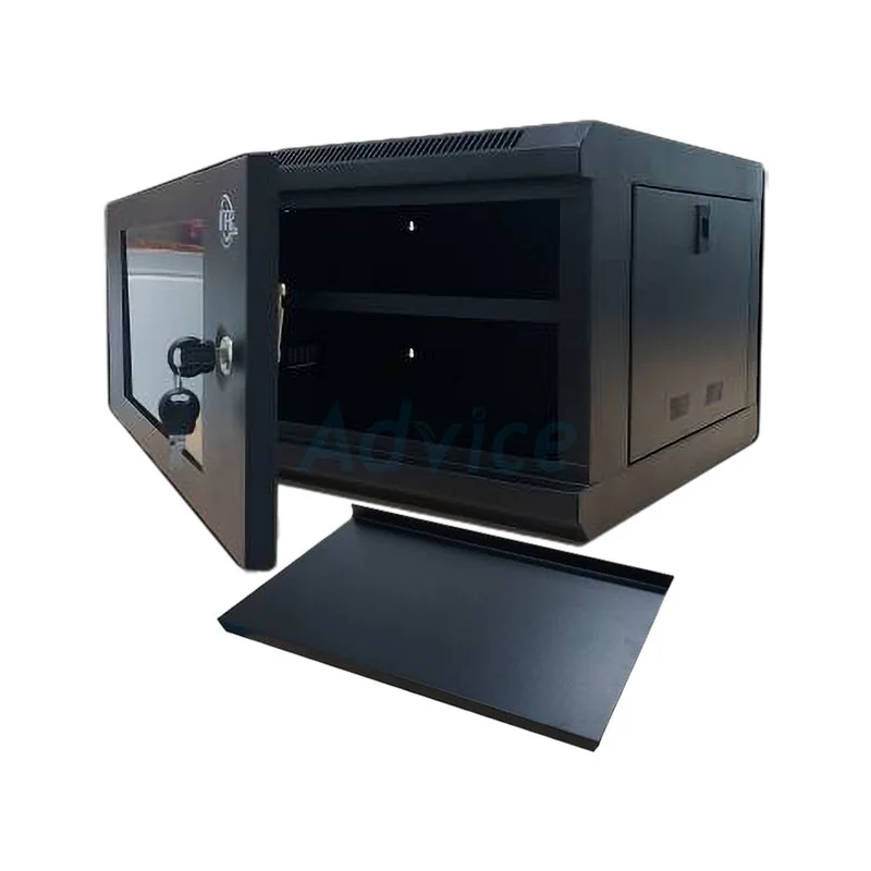 ตู้แร็คติดผนัง 6U มีถาดรองรับอุปกรร์ภายใน